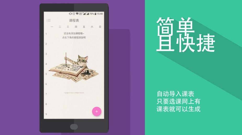 这是一款非常好用的电子课程表,它的体积非常的小巧,但是功能相当齐全,支持用户导入课程表,也支持用户手动对课程进行添加和修改,非常的方便,想要一个整洁漂亮的课程表的同学们不要错过哦!